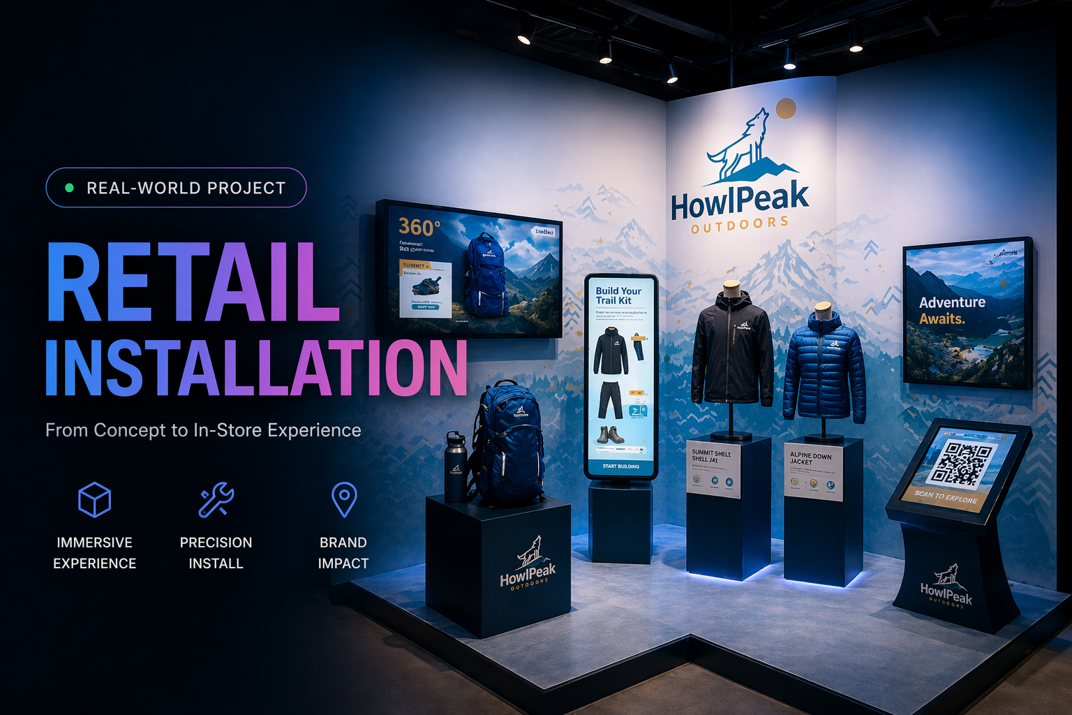 Brand guidelines and campaign assets created for HowlPeak Outdoors across print and digital.